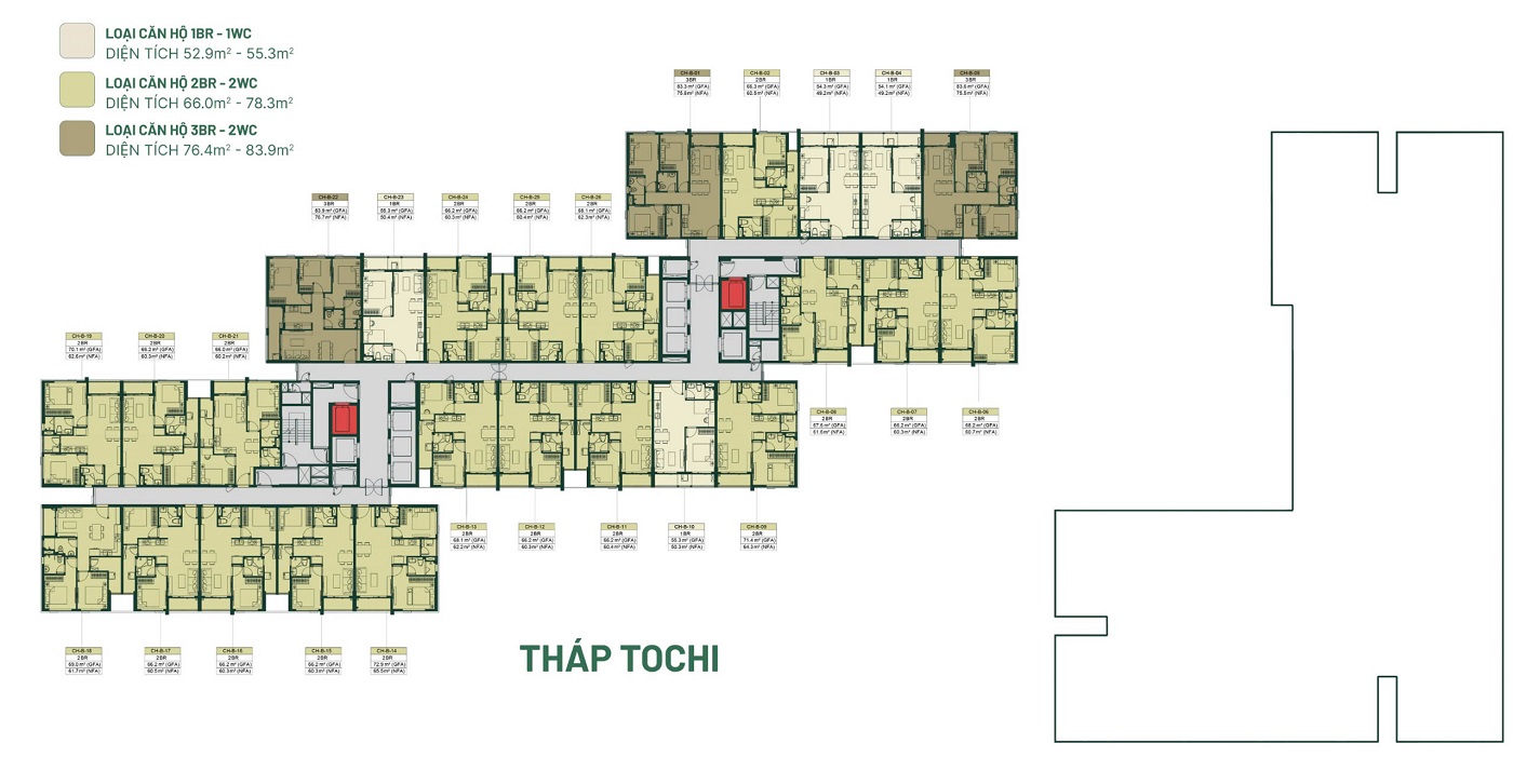 | Căn hộ 1PN + 1WC | 52m² | ~ 1,8 Tỷ/ căn |
